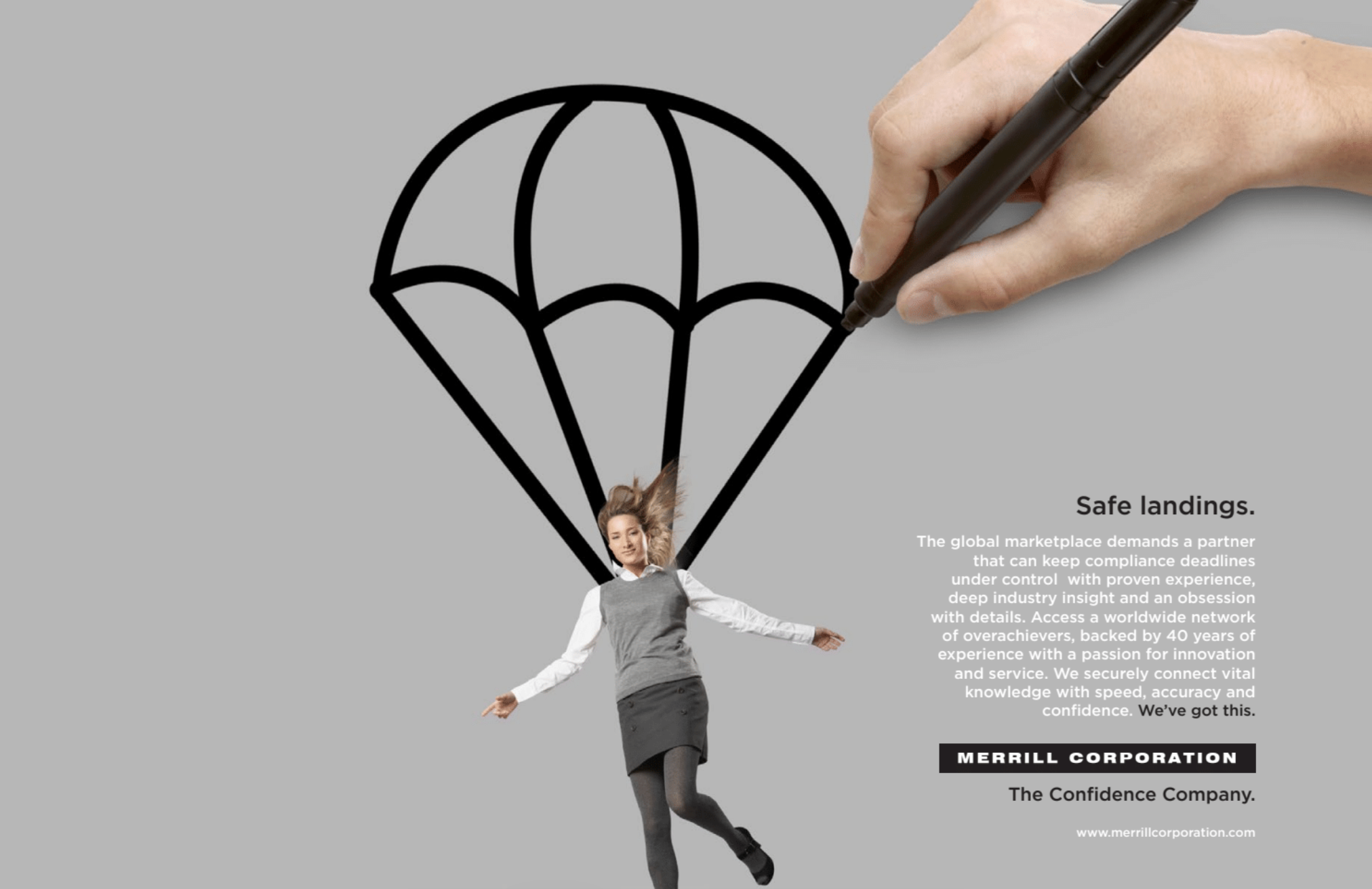 Brand redesign exploration and brand relaunch campaign development for Merrill Corporation (now Datasite), done at The Burns Group NYC.